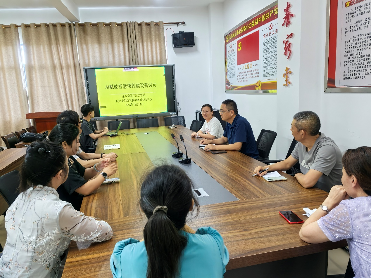2025 年 10 月 14 日下午,我院园艺系于学院会议室(屏 11-301)顺利举办 “AI 赋能智慧课程建设” 专题研讨活动。本次活动特别邀请北京润尼尔科技股份有限公司工程技术团队到场分享交流,园艺教研室主任史凌珊老师主持会议。