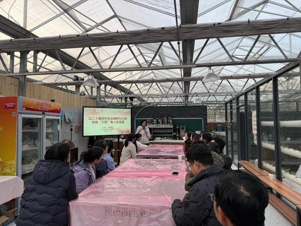 为深入学习贯彻党的二十届四中全会精神,2025年11月27日,茶与食品学院党委书记施晓莉在园艺温室大棚,以《以党的二十届四中全会精神为引领绘就“三茶”育人新蓝图》为题,为教师党员带来了一堂理论与实践深度融合“接地气、冒热气”的党课。