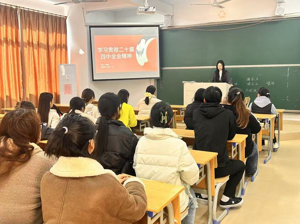 为深入学习贯彻党的二十届四中全会精神,加强支部学生党员的思想理论建设,11月28日,学生第一党支部书记吴婉莹以《学习贯彻党的二十届四中全会精神——以青春之力筑复兴之路》为题,为支部学生党员上党课。