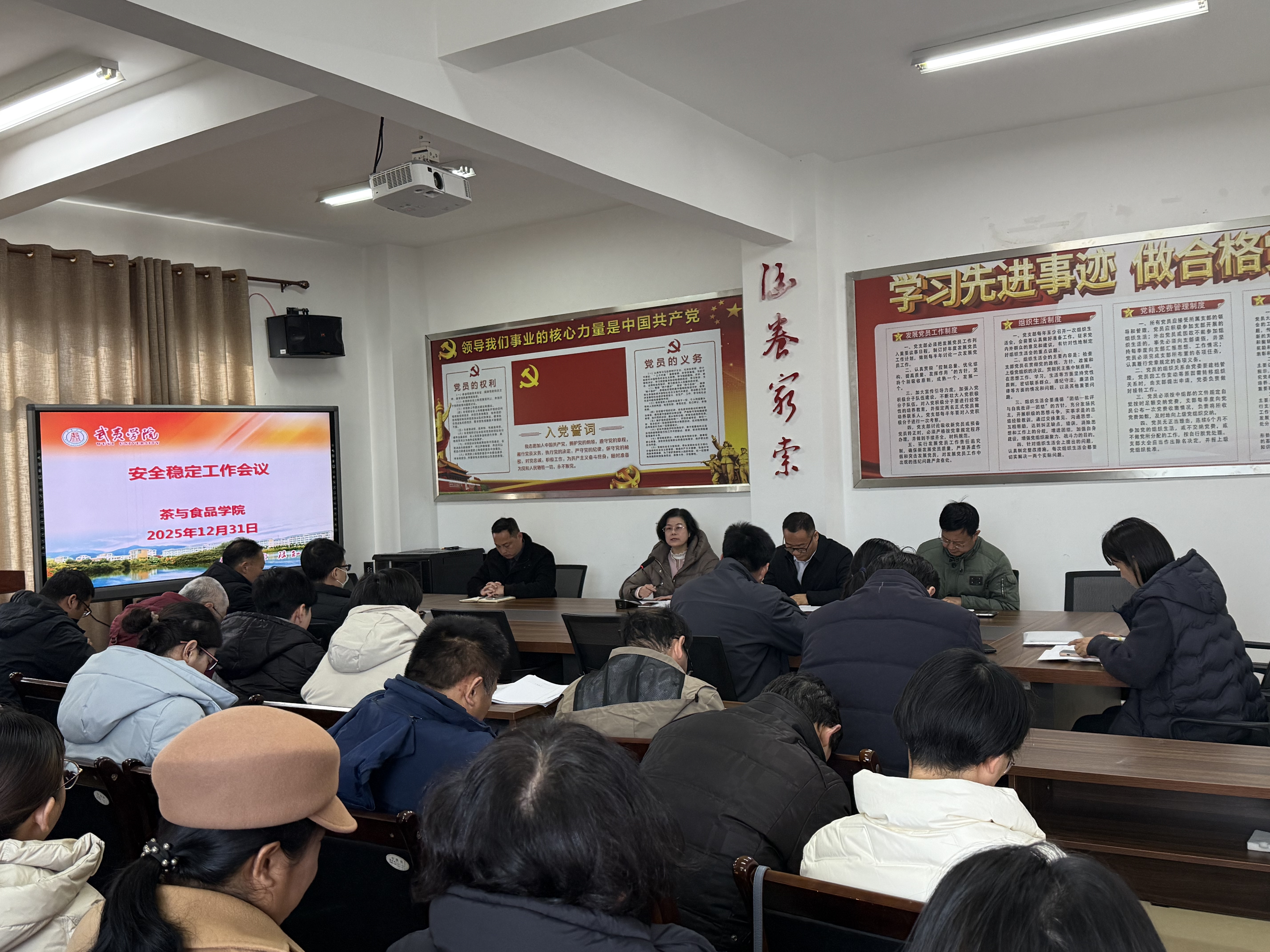 为深入贯彻落实上级部门关于校园安全工作的决策部署,切实保障全院师生度过一个平安、祥和的元旦佳节,2025年12月31日,茶与食品学院组织全体教职工召开元旦节前校园安全维稳工作专题会议。会议由学院党委书记施晓莉主持。