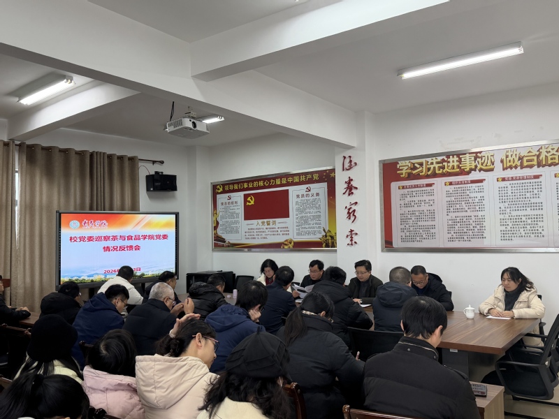 1月23日上午,校党委巡察茶与食品学院党委情况反馈会在屏山11-301会议室召开。校党委巡察组组长祁少华、副组长张知惟及巡察办有关同志出席会议,会议由茶与食品学院党委书记施晓莉主持。