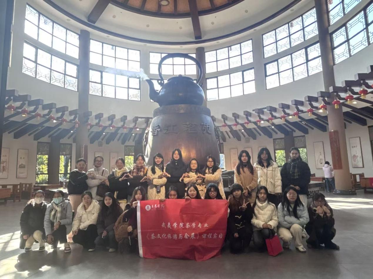 2025年11月17日至21日,武夷学院茶与食品学院组织2022级、2024级(3+2)茶学专业全体学生,成功开展了为期五天的《茶文化旅游与会展》专题实习。本次实习以国家倡导的“三茶统筹”发展理念为指导,通过系统的实地调研与沉浸式产业体验,全面探索茶文化、茶产业与茶科技的融合发展路径。