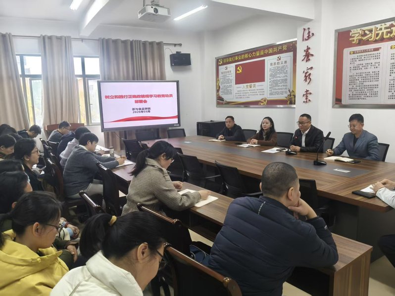 3月13日,茶与食品学院党委召开树立和践行正确政绩观学习教育动员部署会,深入学习贯彻习近平总书记相关重要论述,传达上级党组织通知精神及学校党委部署要求,对学院学习教育工作全面安排,院党委书记罗夏琦主持并讲话。
