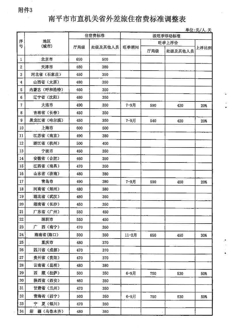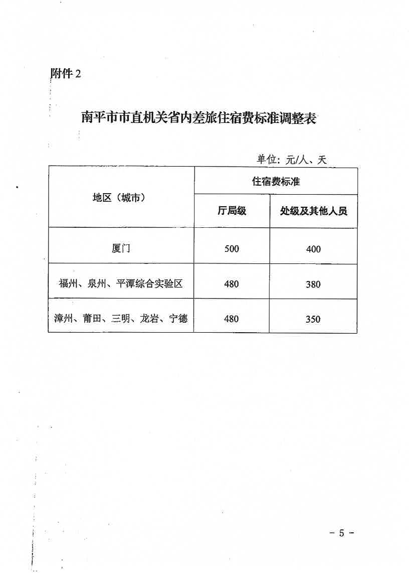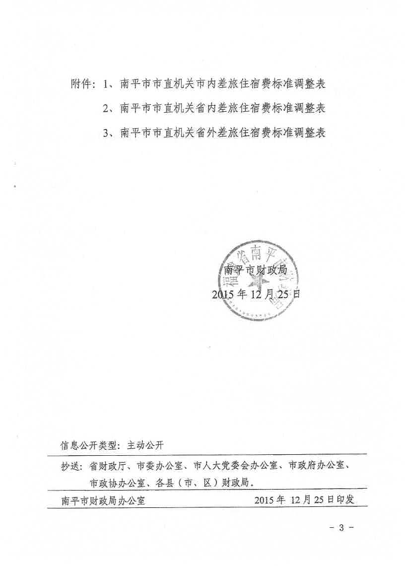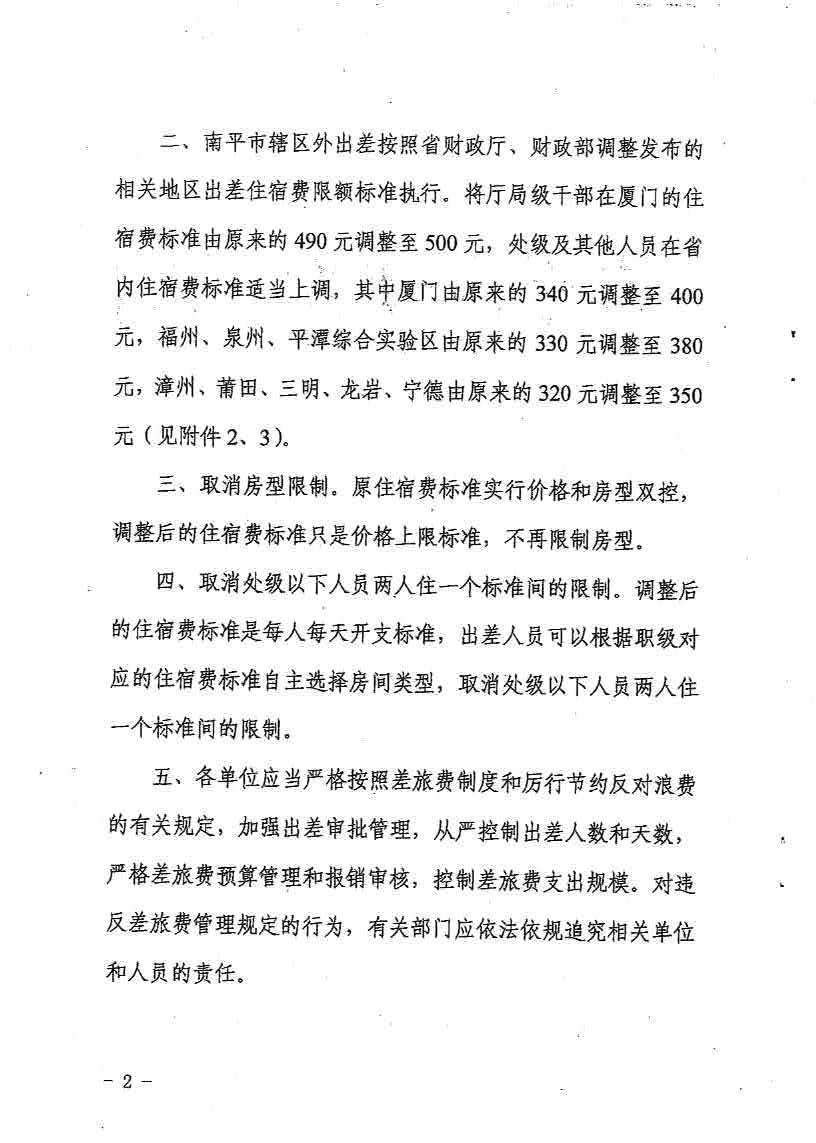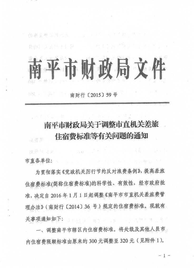 南平市财政局关于调整市直机关差旅费住宿费标准等有关问题的通知
