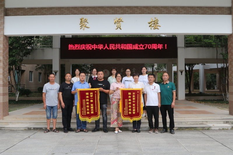 10月9日下午,革命老区基点村“闽北红色首府”武夷山市洋庄乡大安村党总支书记江秀萍及村两委江海勇、魏肇云、李忠平、张刘荣一行五人,来到武夷学院财务处党支部,感谢党支部对大安村的帮扶和支持,并赠送锦旗。