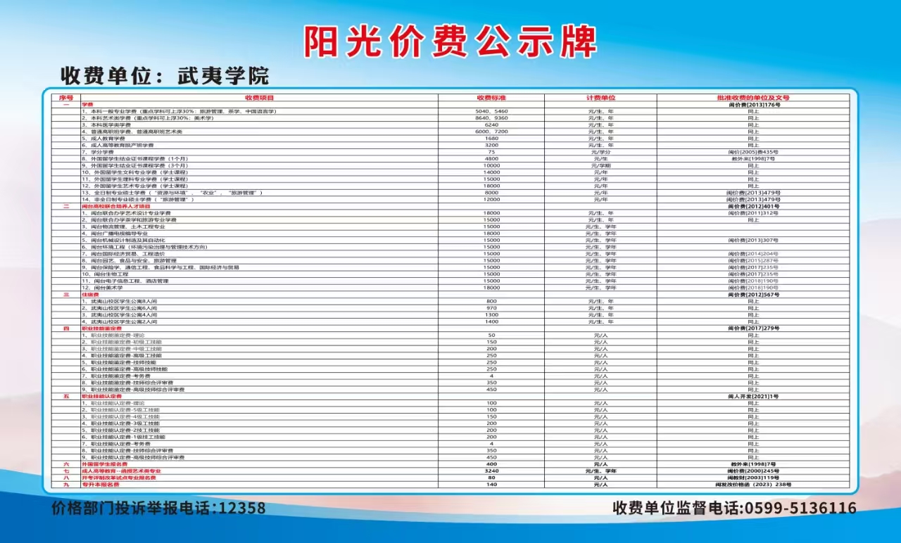 武夷学院2025年秋季收费校长公告及阳光价费公示
