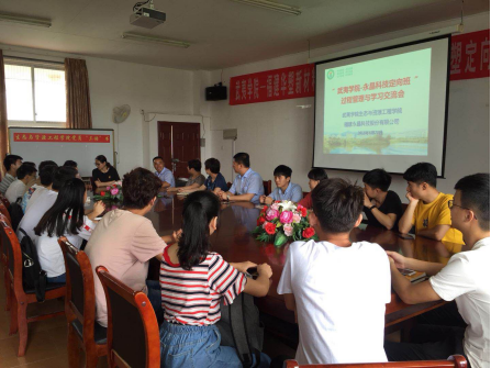 6月21日中午,“武夷学院-永晶科技定向班”过程管理与学习交流会在生态与资源工程学院会议室举行。福建永晶科技有限公司人力资源部部长洪胜财及相关人员,生态与资源工程学院陈培珍副书记、赵升云副院长及专业教师、2015级永晶班全体学生参加了交流会。