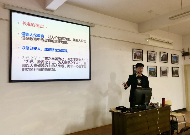 12月12日下午,两海双办教工支部在同文4-402会议室开展由台师黄柏翰博士主讲的“朱子文化”讲座。两海双办教工支部全体同志参加了活动。