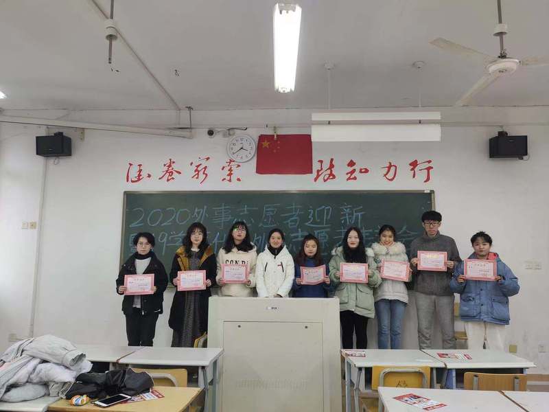 12月17日下午,外事办在瑞樟2号楼406教室召开2020外事志愿者迎新暨2019学年优秀外事志愿者表彰会。本次活动由外事办外事志愿者负责人周璐老师主持。