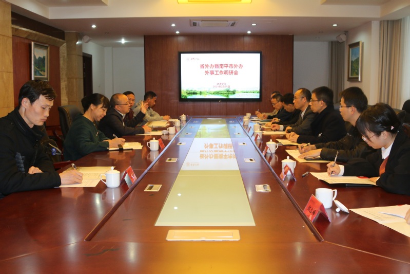 2月25日下午,福建省人民政府外事办公室党组成员、福建省对外友好协会专职副会长罗冠升一行莅校调研我校国际教育合作、茶学专业建设及留学生管理情况,南平市政府办副主任吴建华陪同调研。校党委委员、副校长廖斌陪同罗冠升一行参观了校园,考察了茶园、茶树种质资源圃并主持了座谈,国际合作与交流处、茶与食品学院、海外教育学院等单位负责人及相关人员参加了座谈会。