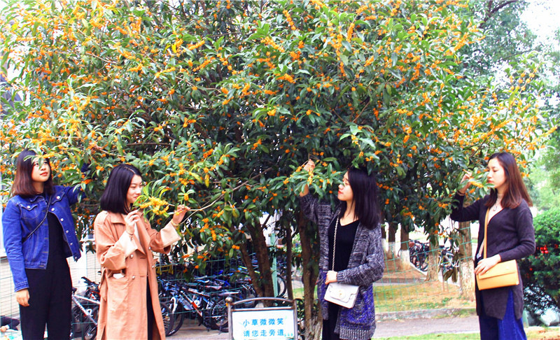 初冬的武夷,清新秀美的武夷学院校园内千棵桂花竞相开放,香气宜人,成为校园又一道亮丽的风景线。广大师生和武夷山市民络绎不绝前来观赏。近年来武夷学院非常重视校园绿化、美化、香化,共种植四季桂、野桂、丹桂、金桂等品种桂花近千棵。