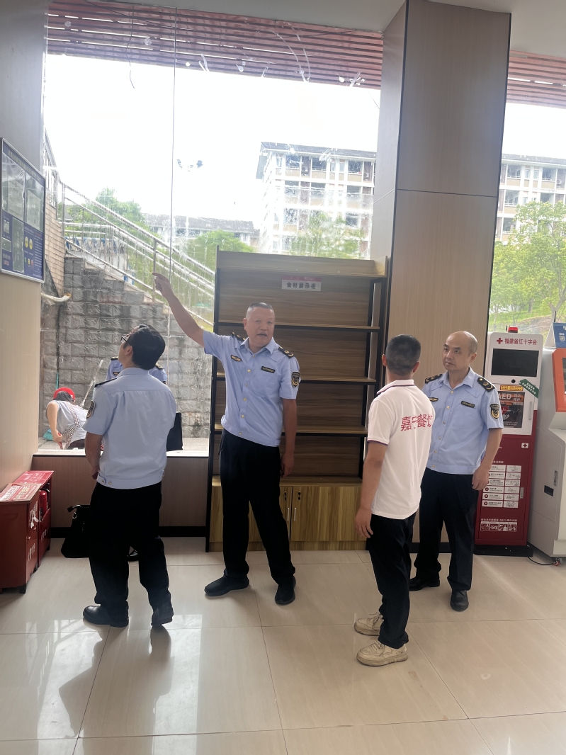 为了护航开学季,2024年8月28日,武夷山市市场监督管理局执法人员到我校开展食品安全专项检查,后勤管理处膳食科相关人员陪同检查。