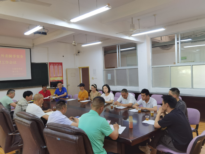 为进一步提升后勤服务从业人员安全意识、责任意识,加强校园内电动车安全管理,6月4日,在瑞樟1号楼后勤管理处会议室召开后勤服务从业人员交通安全培训暨交通安全承诺书签订会。后勤管理处副处长穆寄林、保卫处副处长冯建旺、相关科室负责人以及校内各物业经理和各学生大食堂负责人参加会议,会议由后勤管理处处长龚建金主持。