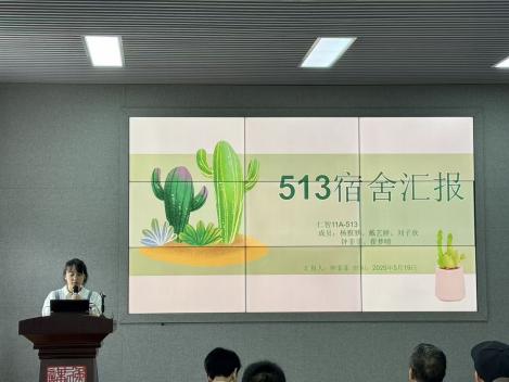 在经验交流环节,五个“优秀文明宿舍”的代表通过PPT展示和生动讲述,他们从“卫生值日制度”“学习互助模式”“舍友矛盾化解”“特色文化活动”等几个角度,展现了如何将宿舍打造成团结友爱、积极向上的“小家”。仁智5—404宿舍围绕“干净整洁”这一核心,展示了她们独创的“责任到人+轮值监督”卫生制度与一目了然的物品收纳妙招;仁智13—511宿舍则强调“公共空间无死角”,分享了高效清洁工具与成员自觉维护的默契心得。仁智11—513宿舍代表讲述她们通过“每周茶话会”方式化解小摩擦、共同学习进步的“宿舍和睦”秘诀;仁智25—505宿舍则用一张张温馨的集体活动照片,诠释了“尊重差异、换位思考”如何成为情谊的基石。