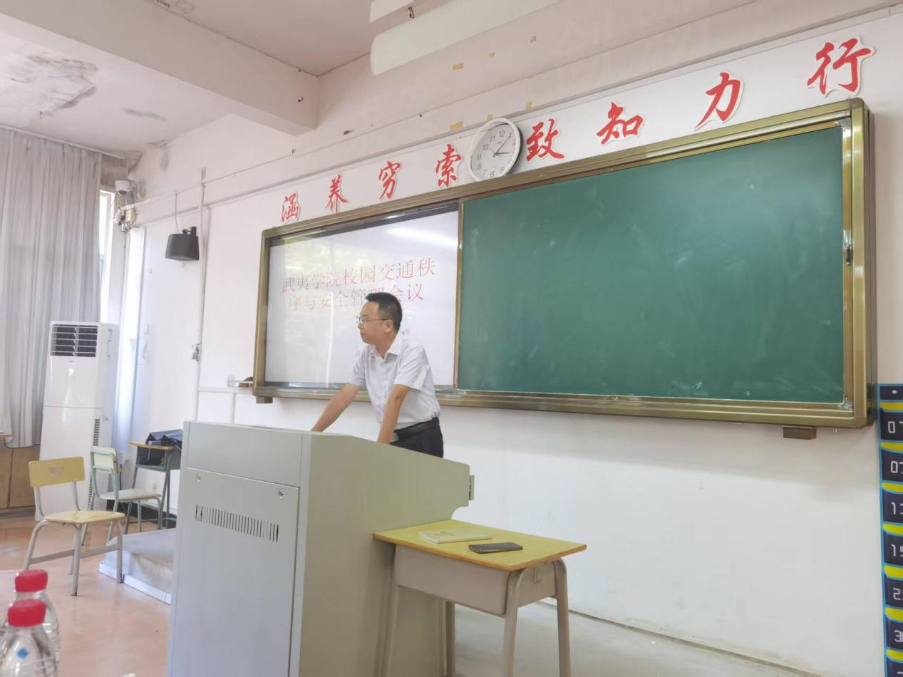 会上,冯建旺深入阐述了强化校园交通秩序与安全管理的紧迫性及其深远意义。他特别针对当前校园安全管理中的重点与难点——外卖骑手规范管理问题,进行了细致说明,明确了具体管控要求和操作规范。范建荣结合日常巡查与师生反馈,指出我校在交通秩序与安全管理方面存在的主要问题,并提出了多项富有针对性的工作建议,为下一步整治提供了清晰的方向。