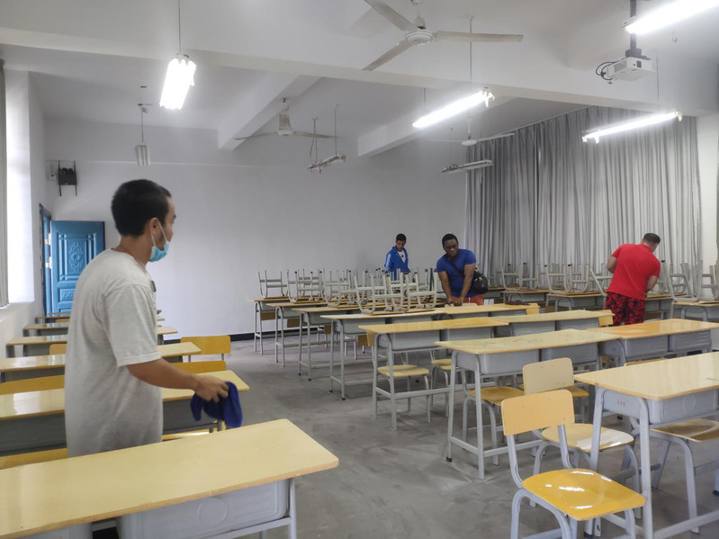 为有开学的新气象,在即将步入课堂学习之前,海外教育学院组织了在校留学生进行了以“开学新气象”为主题的打扫卫生整理教室的活动,让在校留学生们熟悉久违的教室环境,更加快速的进入新学期的课堂学习。