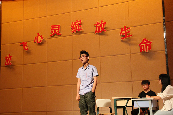 5月30日晚,我校第八届“放飞心灵 绽放生命”心理情景剧比赛在旧报告厅举行。十支队伍轮番上阵,分别从理想、成长、亲情、友情、爱情等方面进行短剧演绎,精彩展现了当代大学生朝气蓬勃、奋发向上的精彩风貌以及他们对当代人生的思考及感悟。经过激烈的竞争,我院心理情景剧《八音盒的故事》荣获三等奖。