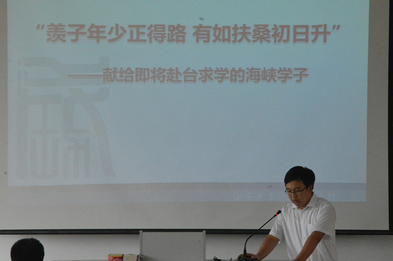 会上,彭华书记首先与同学们分享了自己在台湾的经历与感悟,与同学们共同交流台湾的教学管理模式。同时,彭华书记结合两岸的文化特点要求同学们在台应举止文明,礼貌待人,注意安全。并将“羡子年少正得路,有如扶桑初日升”献给即将赴台求学的海峡学子,希望同学们能够把握青春年少最美好的时光,珍惜赴台学习交流的机会,开拓视野,合理分配时间,把学习放在重要位置。随后,院长也强调在台的一些注意事项,要求同学们加强与带队老师进行沟通,寄语同学们能够在台学习生活顺利。