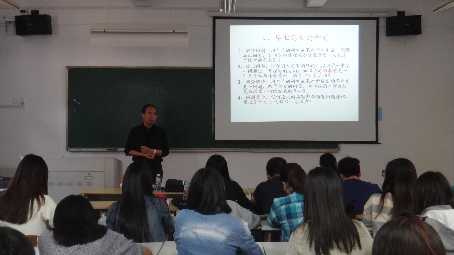 11月3日下午两点半,我院邀请旅游学院副院长朱平安教授于同文2-205为我院2011级旅游管理专业学生开展《如何撰写毕业论文》专题讲座。