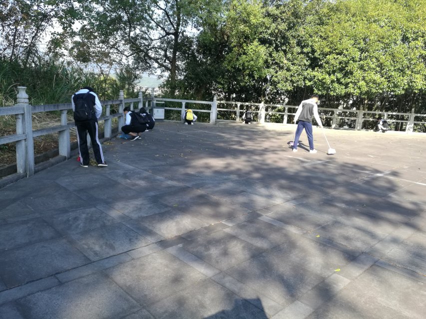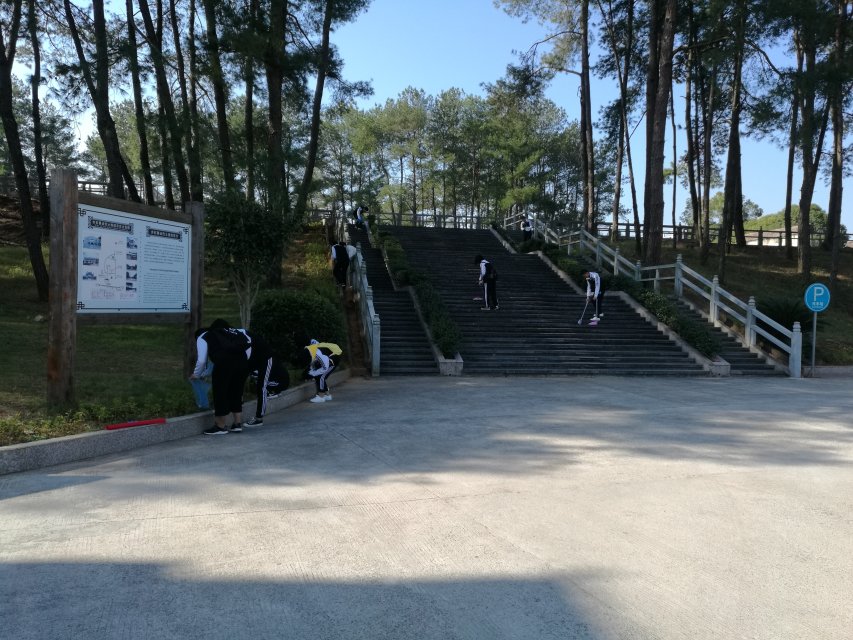 活动正式开始后,大家在按原先的集合点集合,然后一起坐车前往赤石暴动园,抵达赤石暴动园大门后,负责人跟赤石暴动园门卫说明情况,得到他们的支持;清理垃圾过程中,将馆园周边的垃圾收至塑料袋,垃圾袋满后,将垃圾袋放到馆园旁的垃圾桶里进行处理; 垃圾清理干净后,大家在观景台进行休整,交流活动感想,并合影留念; 在观景台进行休整,交流活动感想,并合影留念。