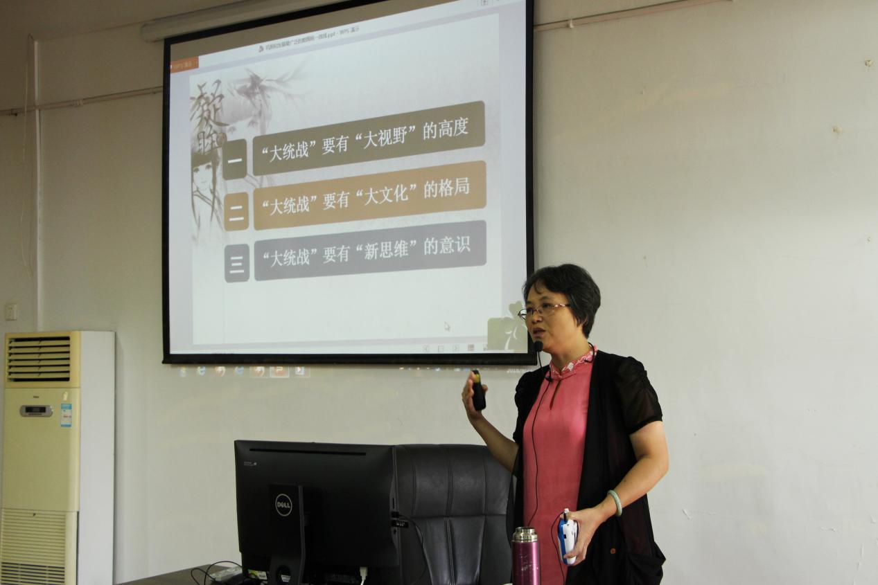随后主题党日进入第二阶段,我校马克思主义学院陈利华教授以题为《团结一致 坚定理想信念——巩固和发展最广泛的爱国统一战线》,把习近平总书记学习社会主义新思想系列讲话中所提及的大统战观点进行剖析,通过众多事例,告诉大家统一信念,凝聚人心的重要性。卢明添院长指出学习习近平新时代中国特色社会主义思想大统战观点,并提议结合相关工作,开展深入学习。