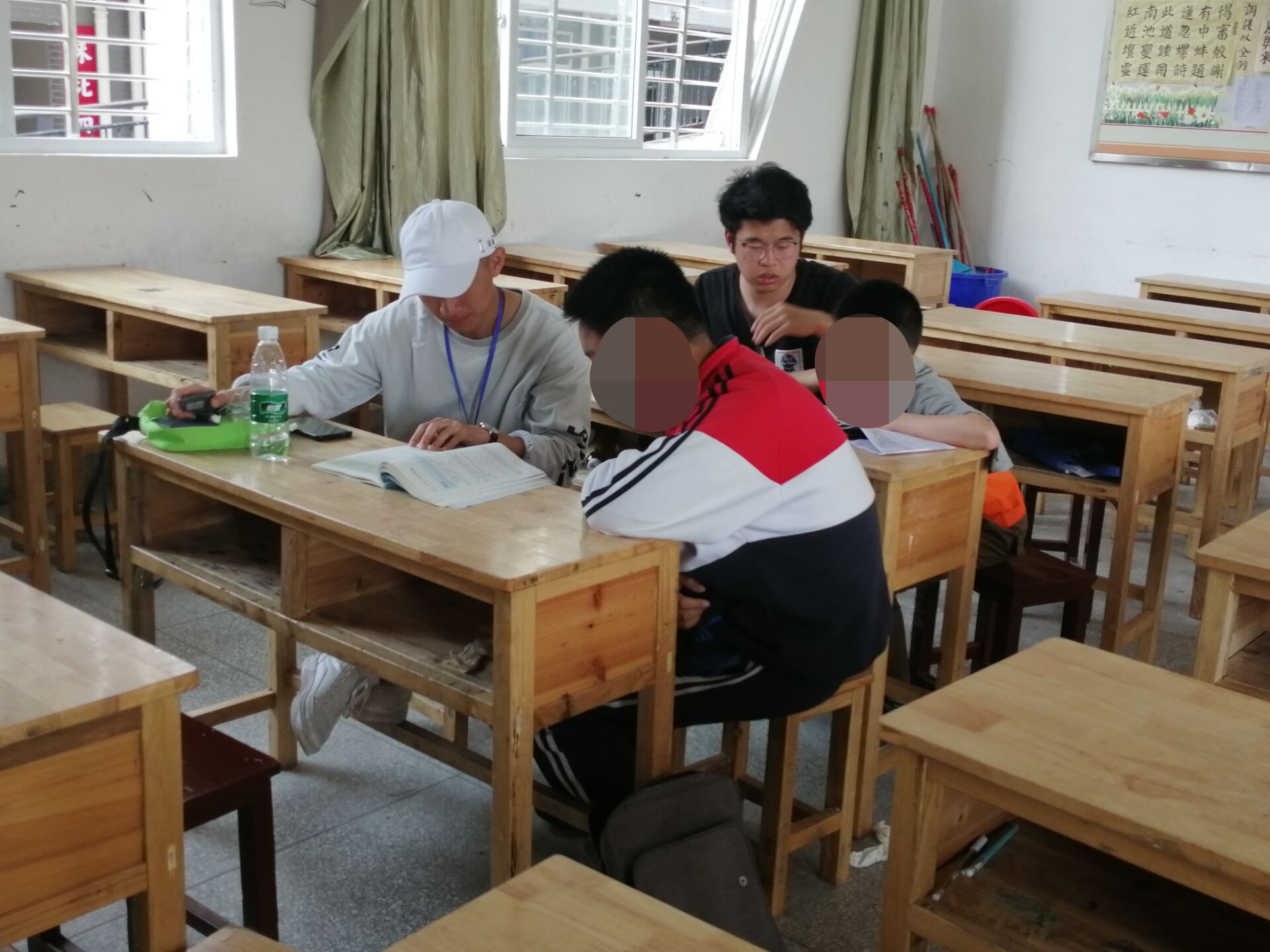 活动开始后,由志愿者带领自己负责的学生到班级进行辅导,为了解决学生们上课枯燥,还有充分发挥各位志愿者的优势,开始组团上课,这样不仅便于学生对问题解法的交流,还可以促进志愿者与学生、学生与学生之间的情谊。