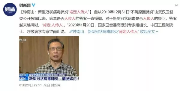 1月20日晚,钟南山院士在接受新闻直播采访中透露:新型冠状病毒“肯定人传人”。一石再然激起千层浪,至此国家卫健委和武汉卫健委在疫情上出现了关键性的口径不同,而四天过后的现在,双方仍未在此问题上公开通报一致口径。答案究竟是什么?是不是人传人?又是怎么个传人法?位居围城之外的公众们还未能得知,只希望政府尽快给出让公众安心的答案。