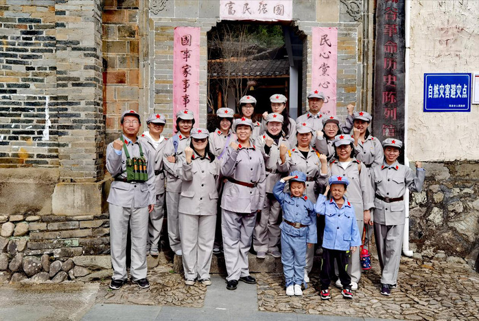 (两海双办教工支部党员在岚谷革命历史陈列馆前合影)