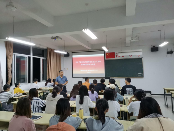 应祥泰书记从习近平总书记在梁家河、正定县的经历说起,导入到他在福建17年的工作事例。党课从习近平总书记造福八闽到为国担当,保护历史文化遗产到坚定文化自信,“四下基层”到全面从严治党,建设服务型政府到国家治理现代化,清新福建到美丽中国,加强闽台合作到推进祖国统一,关心国防和军队建设到强军兴军,深化理论研究到淬炼思想方法等八个方面,结合习近平总书记在福建的“生态福建建设、数字福建建设、晋江经验、机关效能建设、餐桌治理、闽台交流、人民政府、街区治理、文物保护、林权改革”等具体事例引导同学们从中领悟习近平新时代中国特色社会主义思想在福建孕育与实践的情况,为同学们深刻学习并认识习近平新时代中国特色社会主义思想的丰富内涵与核心要义提供了帮助。