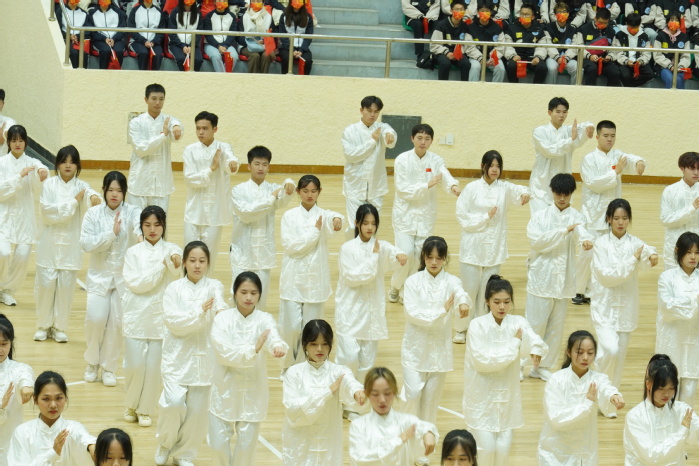 2021年11月18日晚上,武夷学院第四十一节届运动会太极拳比赛于体育馆拉开帷幕。 海峡成功学院代表队为第一支代表队出场。此次校园太极拳大赛主题为“献礼建党百年,舞动青春芳华”,是以庆祝中国共产党成立100周年为核心,此次比赛也体现了海峡学子激昂拼搏,全力奋进的精神,促进学生体质发展。