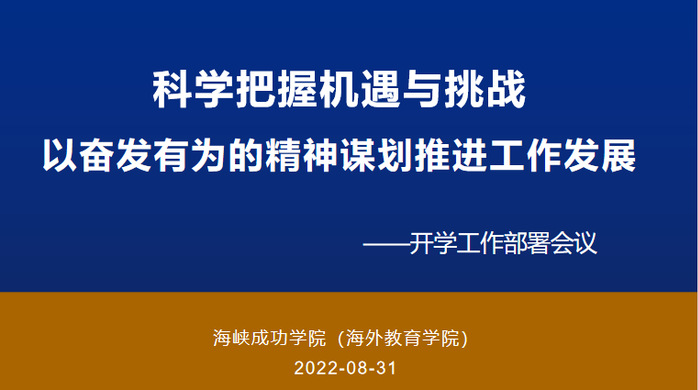 2022年8月31日,学院召开新学期工作会议,全面部署了新学期工作。会议号召全体教职员工科学把握机遇与挑战,以奋发有为的精神谋划推进学院各项工作发展。会议由院党委书记应祥泰主持。