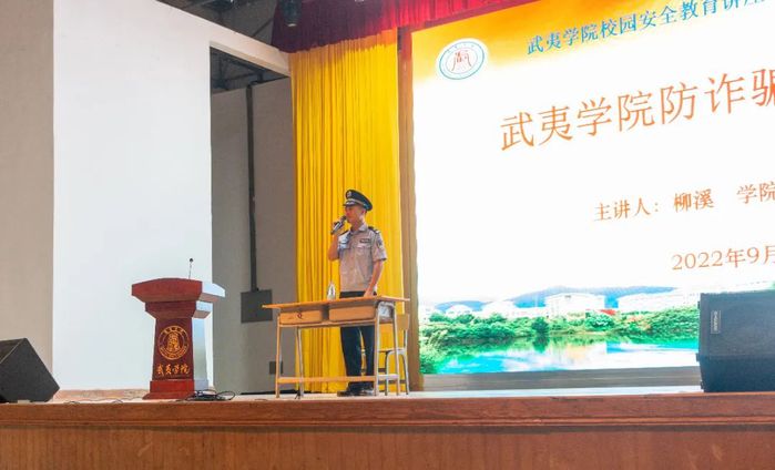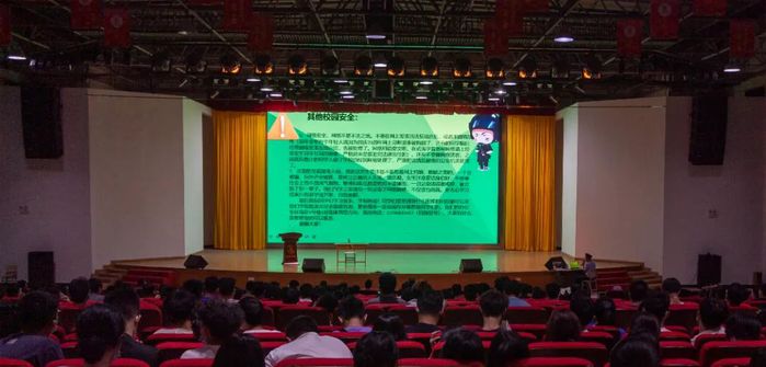 为提高新同学的网络安全意识,增强同学的防诈骗观念,我院于9月27日晚8点,在大学生活动中心报告厅举办防诈骗主题讲座,该讲座由学工科科长朱纯林老师主持,由学院路派出所柳溪警官上台演讲。