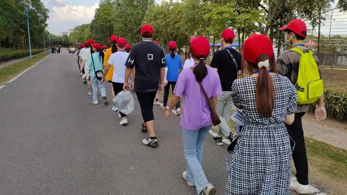 本次活动于2022年9月27日下午开始。主要分为两部分:制定校园路线沿途清理垃圾、清扫学院后山污染物。志愿者们分成两队,进行捡拾塑料袋、饮料瓶、纸巾等生活垃圾的工作。
