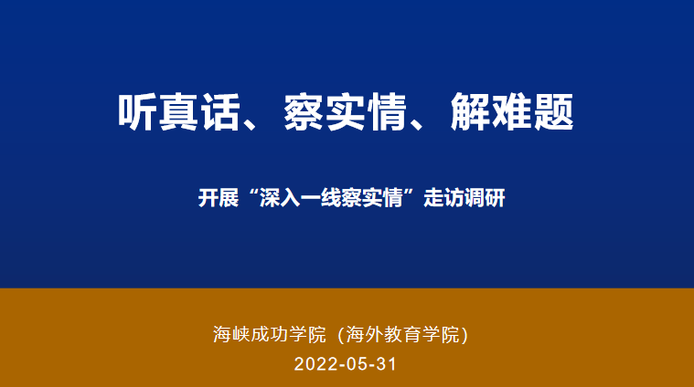 为深入学习贯彻习近平新时代中国特色社会主义思想,扎实开展我院专题专项调研、走访、座谈等工作,充分了解师生在想什么、盼什么,到学生当中去“听真话、察实情、解难题“。为提高效率,现就“深入一线察实情”走访调研工作以分组形式进行,各组要把调研情况汇总形成调研小结,为学院进一步推进工作提供参考。