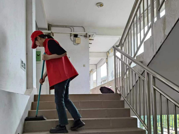 下午,志愿者们分成两队,打扫光明楼两栋楼层,清扫光明楼各个楼层的垃圾,擦拭窗户、清理墙上壁挂等。志愿者们认真仔细,将光明楼打扫得一尘不染,在此过程中,切身体会宿管的辛苦,同时也深刻认识到平时应该注意个人卫生,不随意乱丢垃圾,共同维护宿舍楼的卫生环境。