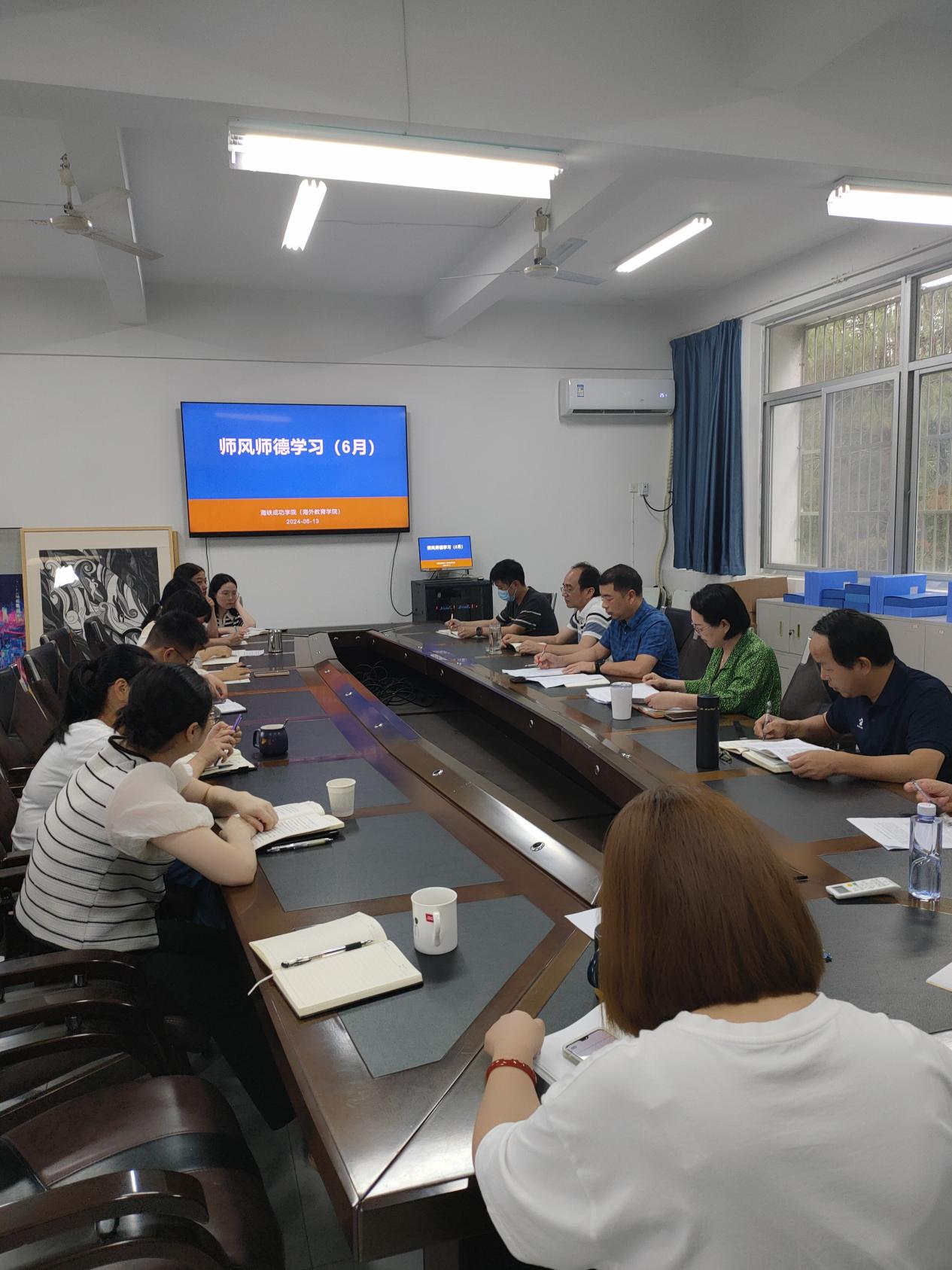 罗付灵副院长(主持)首先带领全体教师传达了并解读了学习了近期习近平对学校思政课建设作出重要指示,同志系列重要讲话精神,再传达并学习了次学校6月份师德师风工作及其内容,强调了师德师风的重要性和必要性,要求大家时刻牢记自身责任使命,保持风清气正的作风。