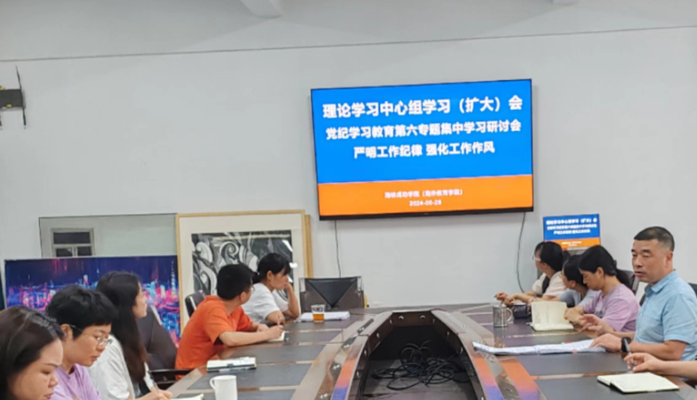 2024年6月28上午,党委召开理论学习中心组(扩大)学习会暨党纪学习教育第六专题集中学习研讨会。全体教职工参加会议。