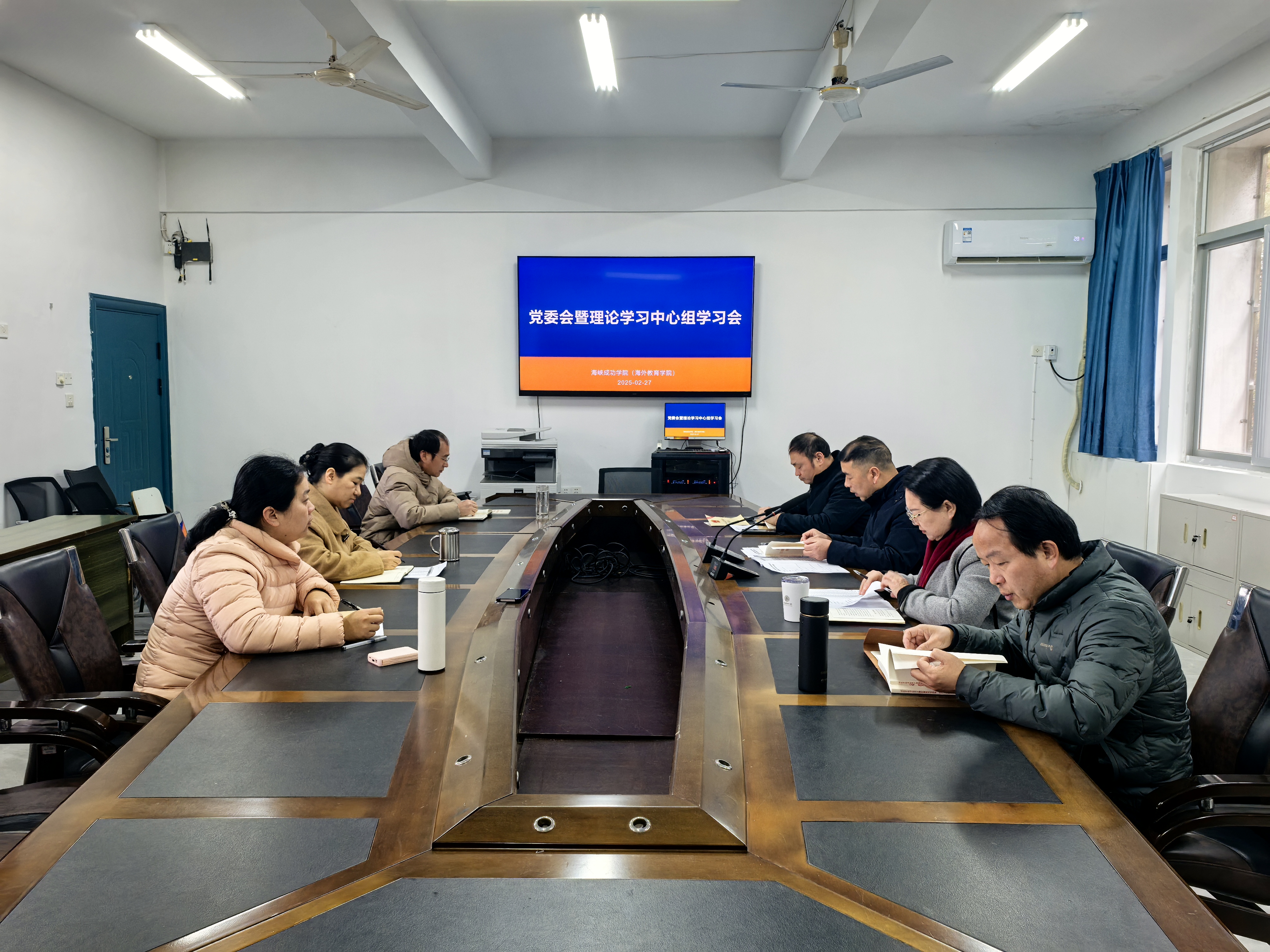 2025年2月27日上午,海峡成功学院(海外教育学院)召开党委会暨理论学习中心组学习会。学院党委委员及罗付灵副院长出席会议。
