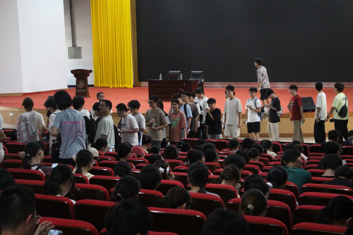 讲座开始前在学生活动中心报告厅举行了简短的学院领导与2025级新生见面会。学院党政领导班子全体成员到场,见面会由学院学工科朱纯林科长主持。