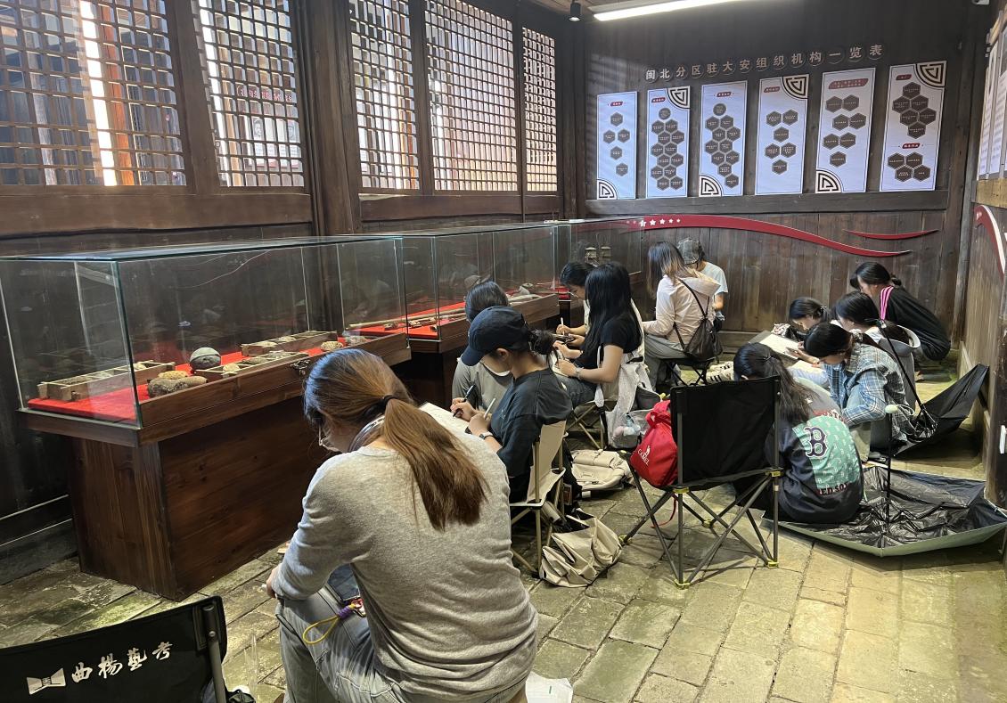 本次活动围绕红色文化探访展开,首站带领同学们走进闽北苏维埃政府旧址,展厅内战争时期的手榴弹、刀枪与藤编物等文物静静陈列,大家边听讲解边记录,既触摸历史温度,也积累红色创作素材;随后在建阳书坊乡,师生于康宁古街、拿坑古村等地写生,挖掘地方文化内涵,交流技法并请教典故,完成百余幅极具当地风情的艺术作品,带队老师蔡小龙表示专业实践助力学生“感受美、创造美”,提升综合审美素养。