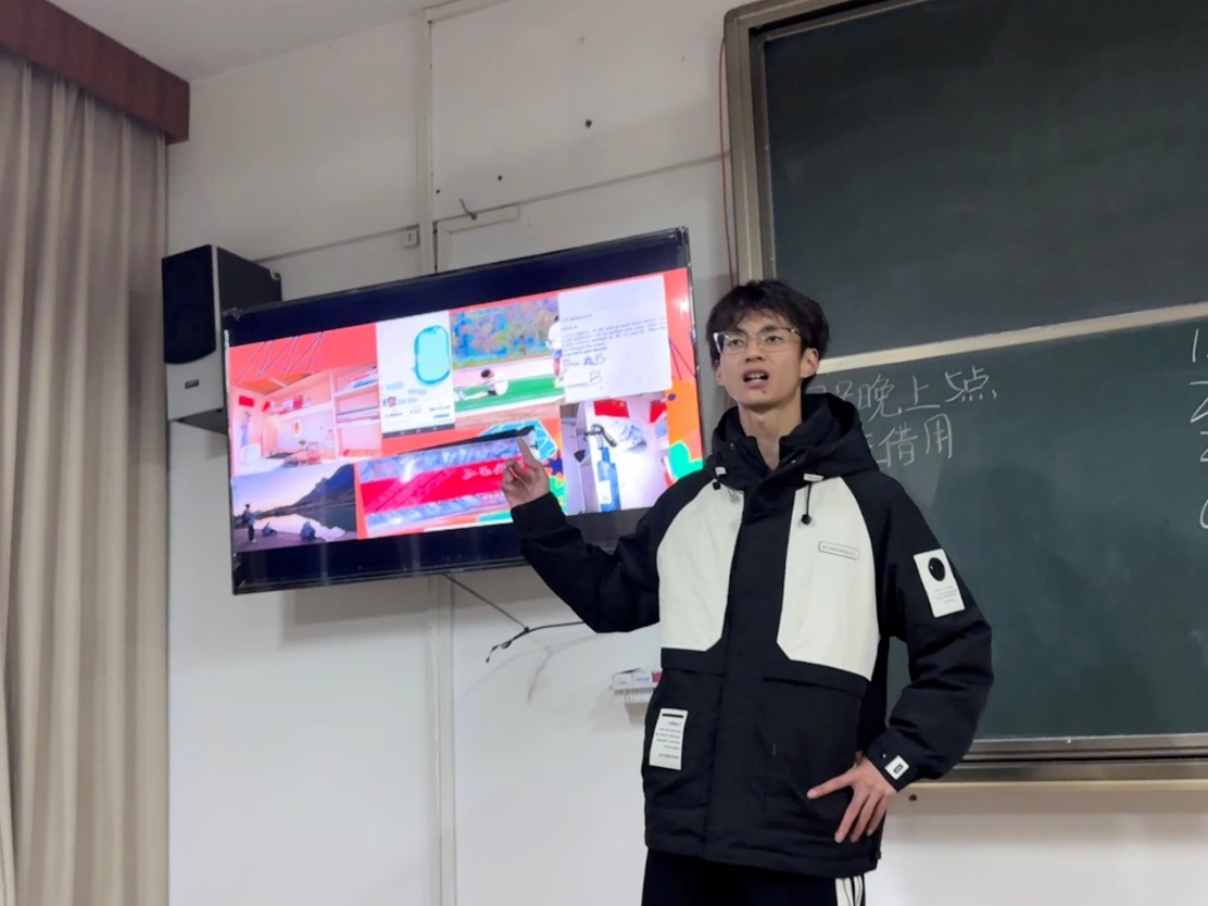 随着开场环节结束,比赛正式进入演讲展示阶段。参赛选手依次登台,每人都带着精心制作的主题PPT,以图文结合的形式开启分享。屏幕上,初入武院时的迎新场景、参与易班活动的协作瞬间、武夷山校园的四季风光等照片逐一闪过,搭配饱含温度的文字,将“初遇武院的好奇、融入易班的温暖、携手成长的感动”娓娓道来。