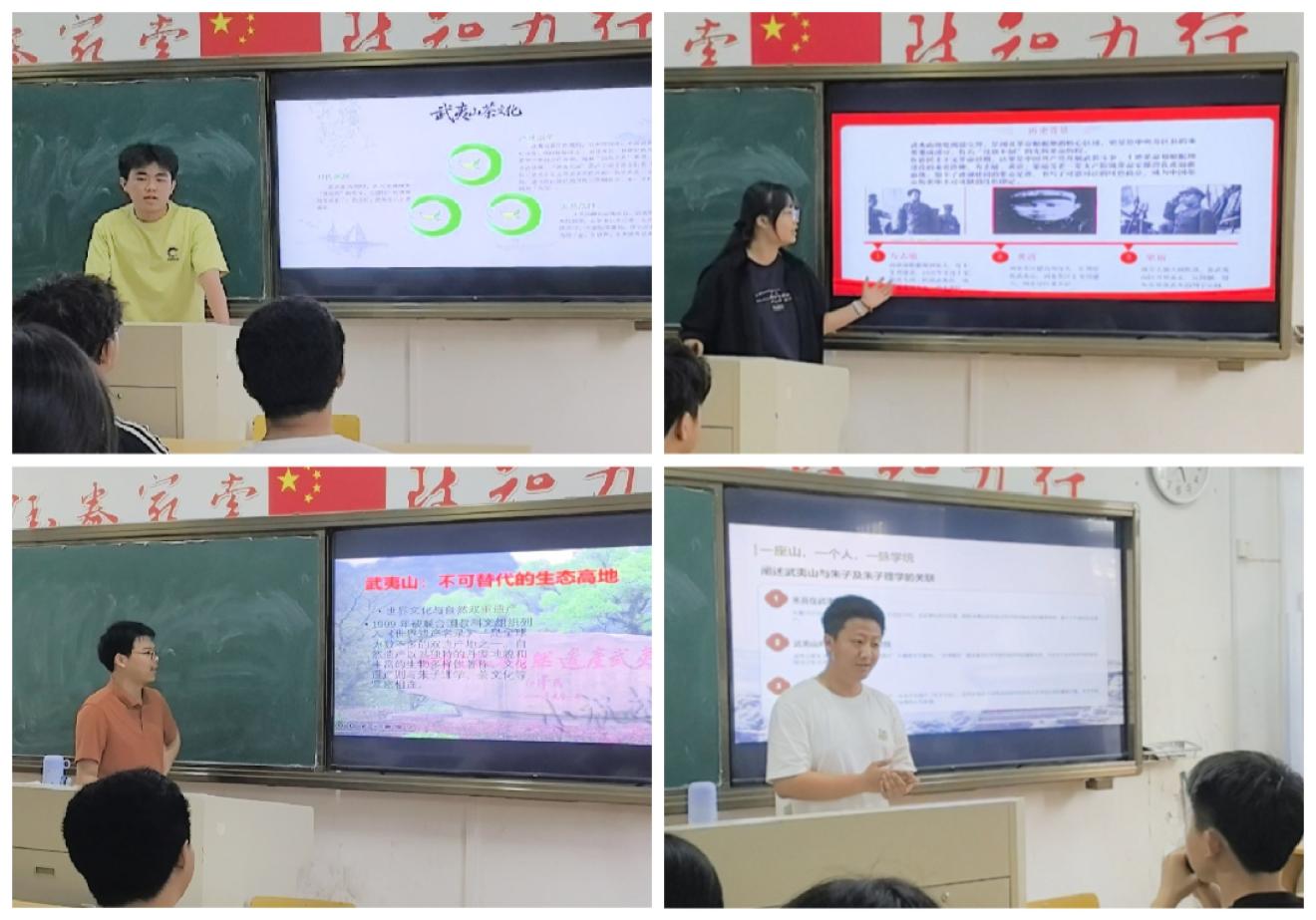 此次活动中,主讲同学分别围绕武夷山茶文化、红色文化、生态文化以及朱子理学文化展开分享。在茶文化模块,同学们深入解读了武夷岩茶的起源与历史底蕴,讲述万里茶道、贯通中西的传奇故事;红色文化部分,重温革命先辈在武夷山的奋斗历程,传承红色基因,筑牢理想信念:在生态文化方面,一同探寻世界双遗产地的生态价值与保护成果,展现人与自然和谐共生的生态实践;朱子理学文化则带领大家领悟朱子思想的核心,领会格物致知方法论的传统智慧。