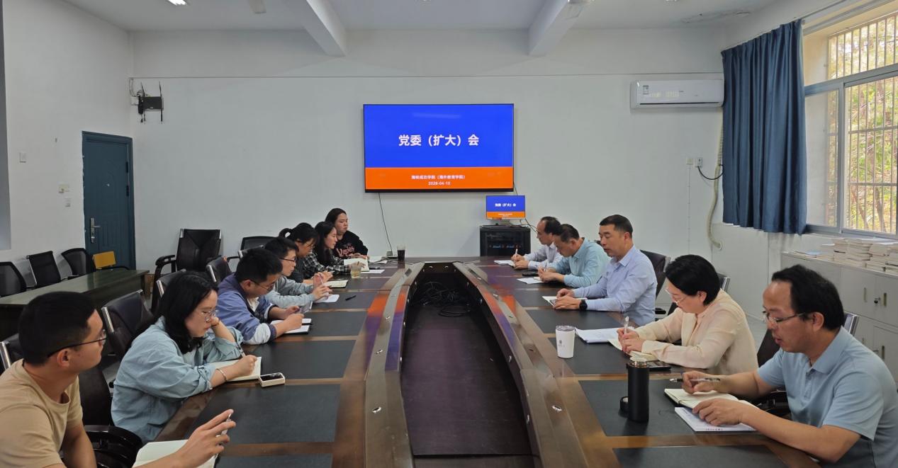 4月10日下午,为落实上级决策部署,统筹推进学院安全稳定、毕业生就业创业、全面从严治党等重点工作,院党委在同文6-303会议室召开党委(扩大)会议。学院党委委员、各支部书记、科级以上干部、辅导员参会,罗付灵副院长(主持工作)列席会议,会议由学院党委书记应祥泰主持。