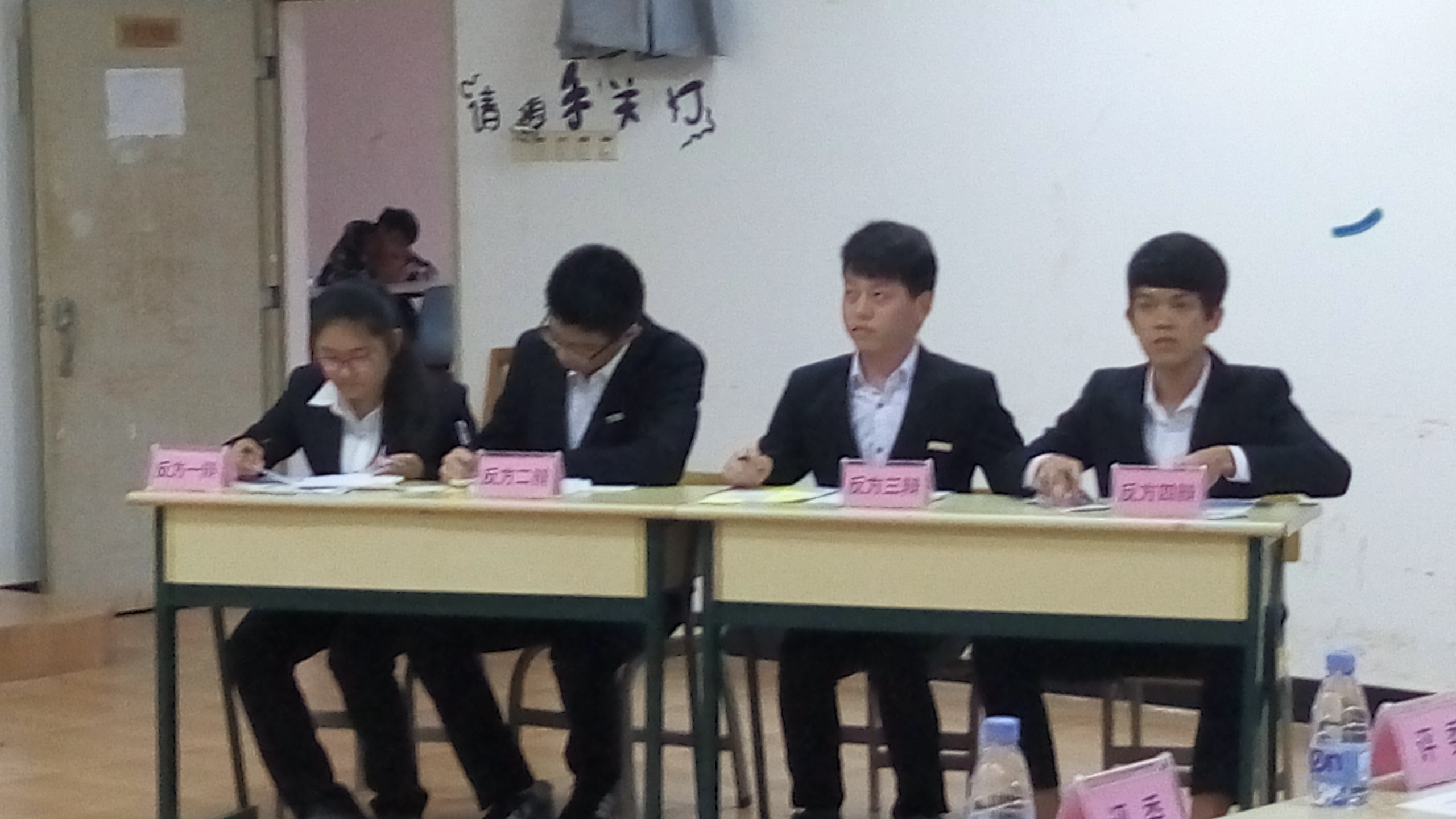 2016年5月8日早8:30,武夷学院第七届“金穗杯”大学生辩论赛复赛之机电学院VS海峡成功学院在瑞10#105教室举行。参与本次比赛的有三位高级评委老师、两个院系的代表辨员,以及前来观看比赛的观众。