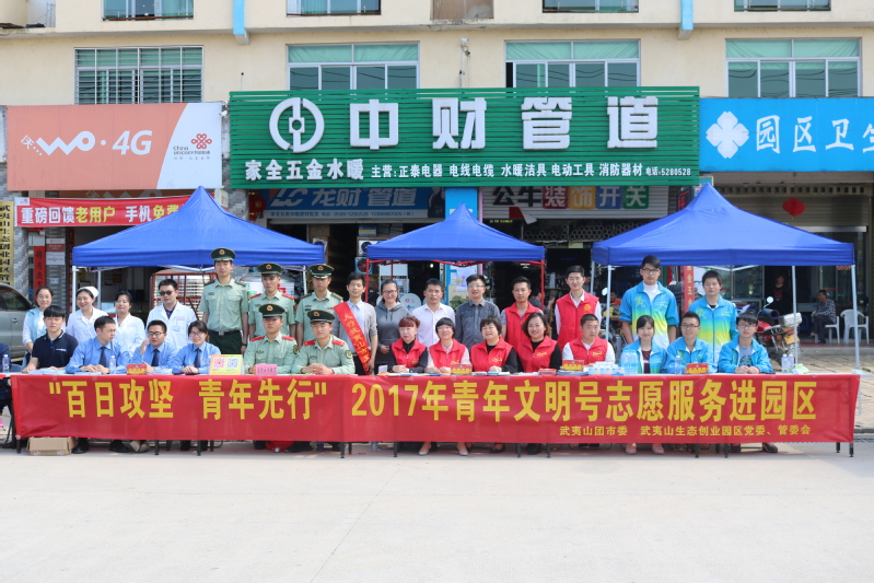 2017年4月28日,机电工程学院义务维修青年突击队积极参加由武夷山市团市委联合生态创业园区管委会共同开展的“百日攻坚 青年先行——2017年青年文明号志愿服务进园区”活动。