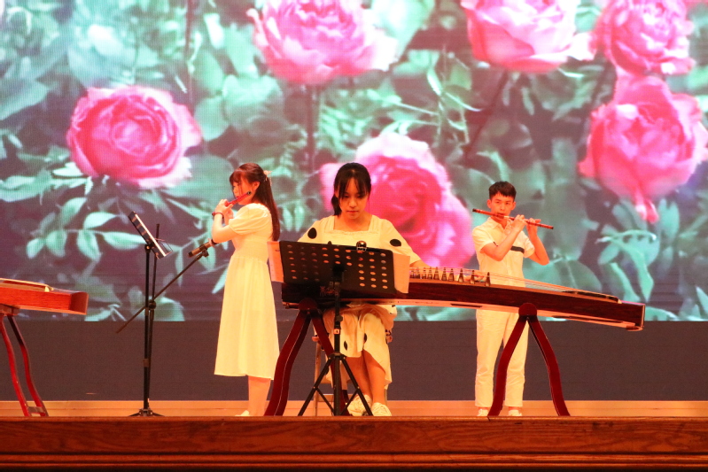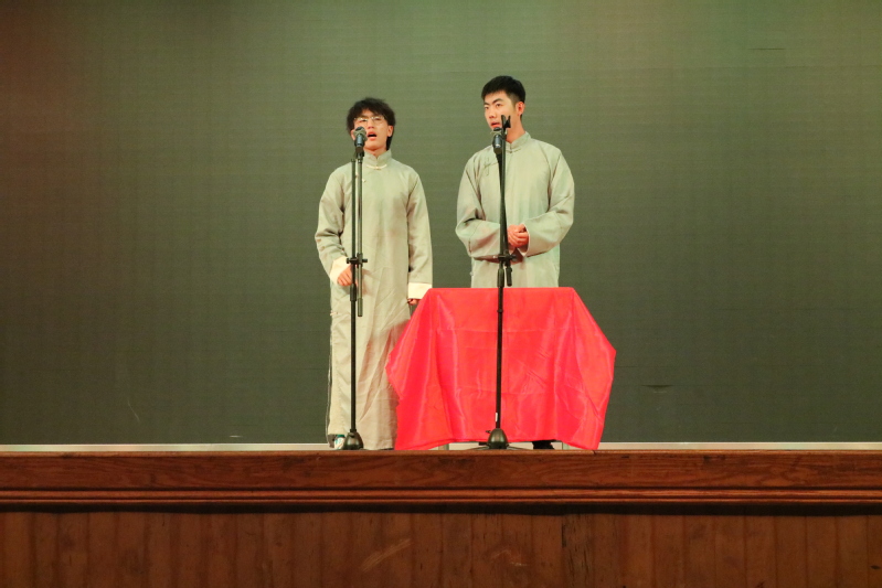 紧接着就是各部门带来的表演,体育部带来的《酒醉的好汉》以滑稽的音乐和动感的节拍火热现场的气氛,趣味满满的《配音秀》是实践部送给毕业生们的毕业礼物。当大家正处于火热表演中时,民乐队的一曲《雪落下的声音》瞬间使人心旷神怡。