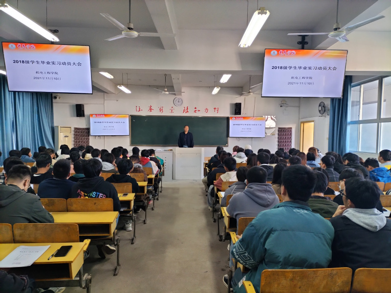 为扎实推进2018级学生毕业实习工作,11月9日-10日,我院分四场组织2018级学生及海峡成功机械共420多位同学,在瑞樟5-206、5-306召开毕业实习动员大会。院党委书记龚建金、副院长潘应晖、毕业班辅导员徐丽娟、杨文正等出席了大会。