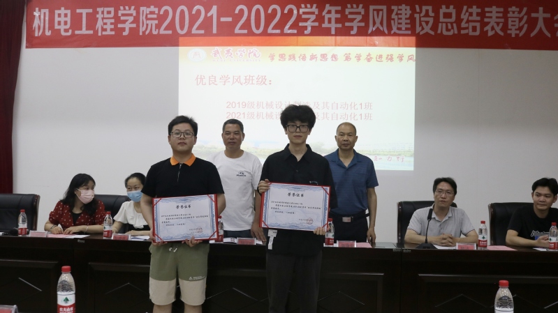首先,郭波副院长明确我院建设优良学风的重要性及意义,宣读学院优良学风表彰名单,对优良学风班级、优良学风宿舍、学习标兵、优秀朋辈导师进行一对一的颁奖。紧接着由张栋梁同学(优良学风班级代表)、林志雄同学(优良学风宿舍代表)、金振豪同学(学习标兵代表)、杜孔达同学(优秀朋辈导师代表)、张开心同学(第十届全国大学生机械创新设计大赛荣获二等奖学生代表)分享了这一年各自成长经验和学习心得,告诉同学们在接下来的大学时光里,要进一步端正学习态度,刻苦钻研,再接再厉。最后,龚建金书记总结发言,他代表学院党政向受到表彰的先进个人和集体表示热烈祝贺!向为创建良好学风付出不懈努力的广大师生们表示衷心的感谢,希望全体同学向受表彰的集体和个人学习,与时俱进,全身心地投入到学院转型发展的实践中,谨遵“涵养穷索,致知力行”的校训,以新时代新思想为引领,促进学院学风建设再上新台阶。