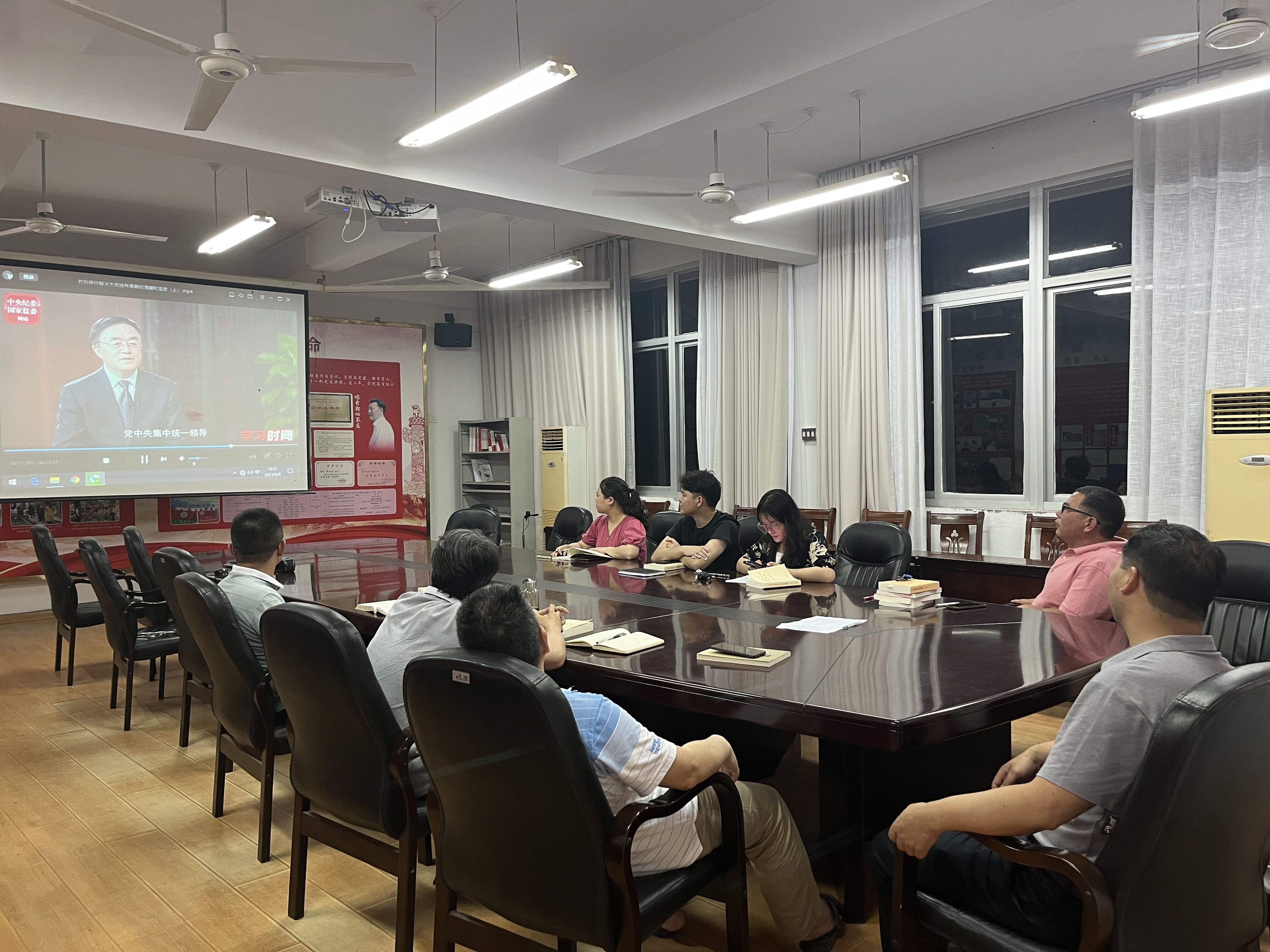 6月6日晚,学院党委在瑞5#301会议室召开专题学习会,观看党校公开课《中国共产党的文化使命》、《时刻保持解决大党独有难题的清醒和坚定》、《在坚持”两个结合“中开辟新境界》等视频。学院处级领导干部和党支部书记参会学习。