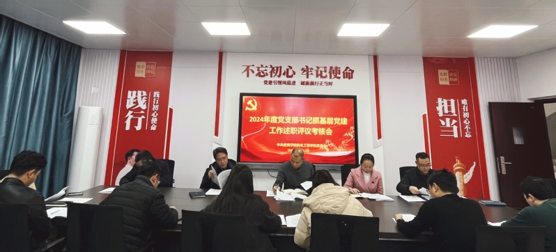 此次考核会议采用现场述职、集中点评、述职评议相结合的方式。学院2个教职工党支部书记和3个学生党支部书记汇报2024年抓支部党建工作情况,围绕当前支部工作在发展党员、服务群众、党员教育和管理、支部理论学习和实践活动、党员示范作用等方面存在的问题及原因进行分析,并结合专业特色汇报了下一步工作思路。